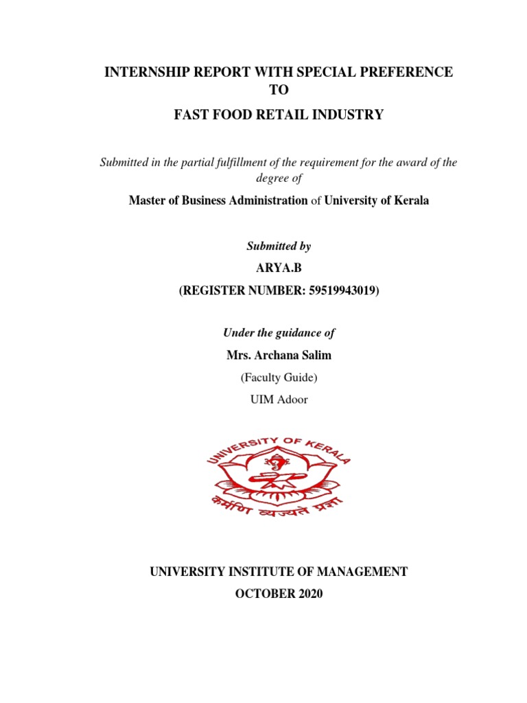 Arya B Internship Report Pdf Pdf Fast Food Restaurants Fast Food